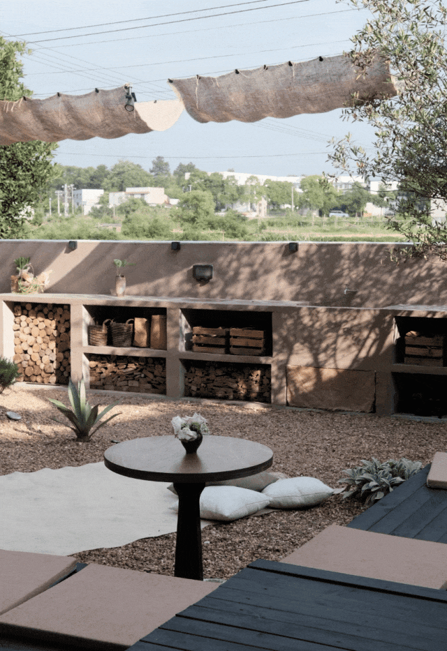 像是桌椅,基本都是用东南亚那边风化后的老木头做的,本身自然的纹理和颜色就很美,而且相对来说比较稳定,不太会有太大的变形。餐具,我们也想用当地的泥自己去烧制。